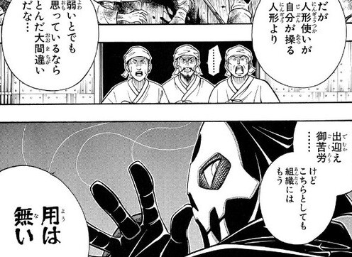 仮面キャラは素顔が醜いから仮面をつけてんだろーが→アンケで大不評で確かにそれで誰が喜ぶんだ?と反省したってことだけど、たぶん外印って元々は蒼紫の引き立て役のつもりだったけど思いのほか人気が出てしまってたのが誤算だったのかもな