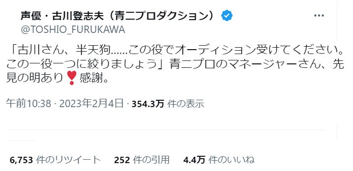 古川さんは普段からめっちゃフツーに若手に混じってオーディションやってるらしい