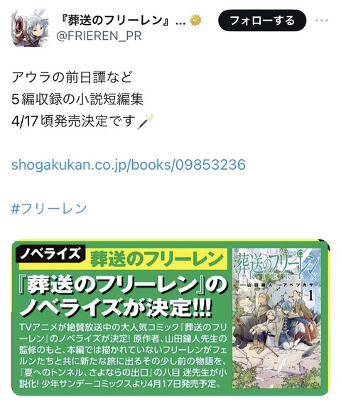 フリーレンももちろん楽しみだけど、他の漫画もこれを機に小説でメディアミックス展開してほしい