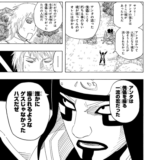あんなん卑怯じゃん!ってナルトが言って傀儡人形も立派な忍道だからって嗜められてたな